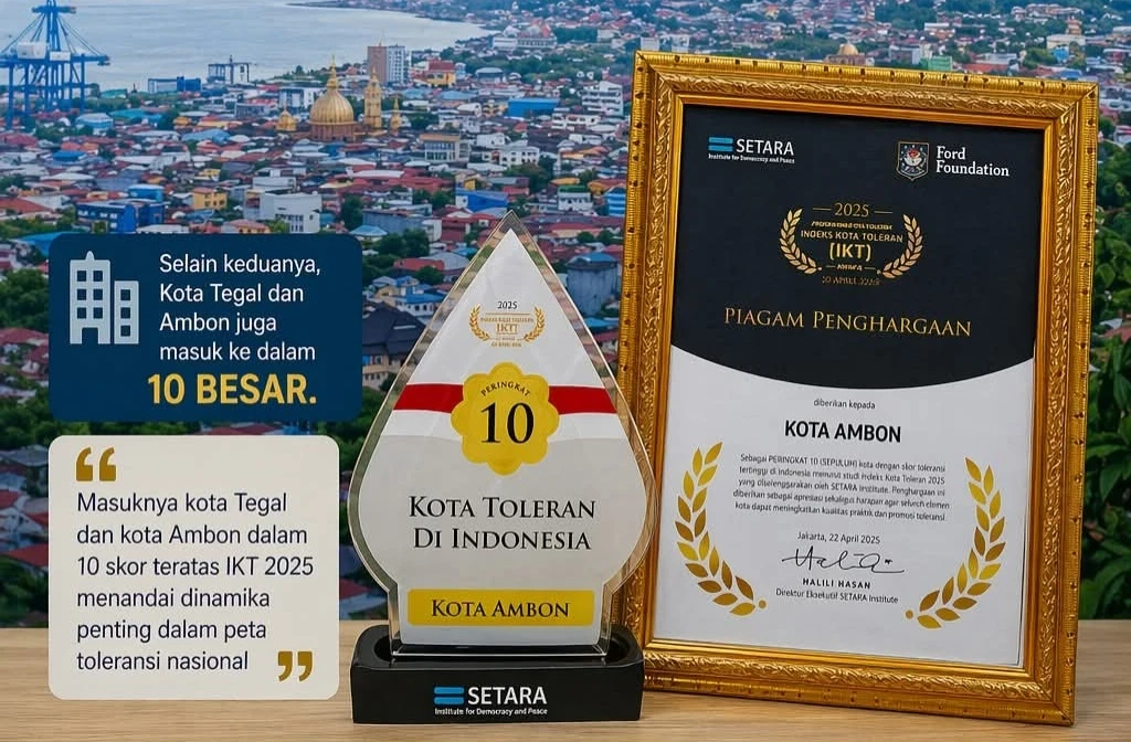 “Masuknya Kota Tegal dan Kota Ambon dalam 10 besar IKT 2025 menandai dinamika penting dalam peta toleransi nasional. Jika sebelumnya dominasi 10 besar relatif diisi kota-kota yang sudah mapan dalam tata kelola keberagaman, kini muncul aktor-aktor baru yang menunjukkan akselerasi signifikan,” ujarnya, Rabu (22/4).