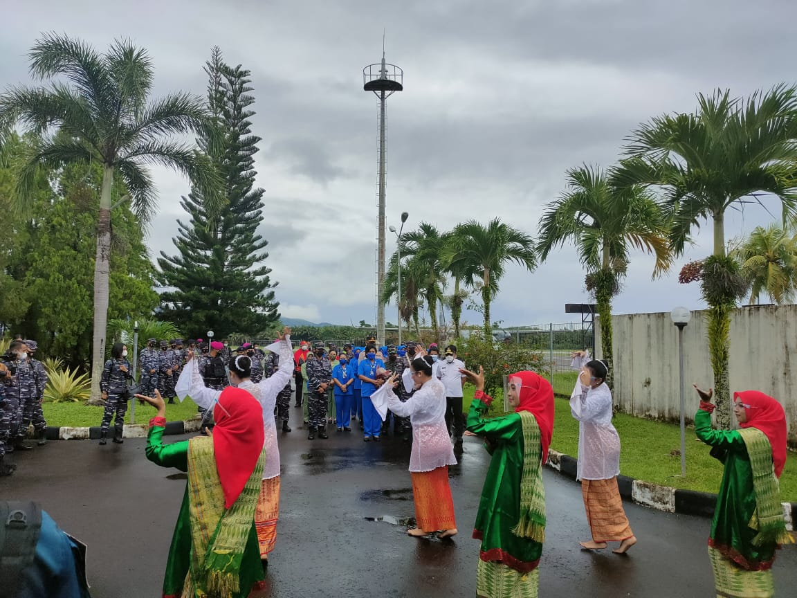Rombongan KASAL tiba di Bandara Patimura Ambon menggunakan pesawat TNI Angkatan Udara. Rombongan turut dijemput dengan tarian adat Maluku.