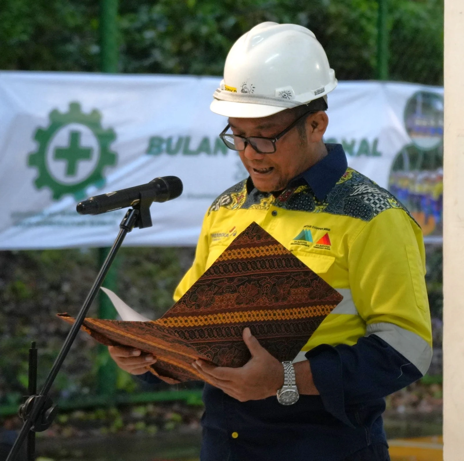 Kegiatan tersebut dihadiri perwakilan karyawan dari anak usaha Merdeka Copper Gold dan dipimpin langsung oleh Pelaksana Tugas Kepala Teknik Tambang, Rudi Prabowo, selaku inspektur upacara.