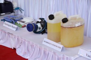 Petugas selanjutnya melakukan penggeledahan terhadap sebuah mobil LCGC dan menemukan sejumlah barang bukti yang diduga digunakan dalam proses produksi mephedrone, seperti jerigen warna putih, jerigen biru berisi ethyl acetate, kotak baju berisi 2 botol kaca happy growth, alkohol 96%, jerigen berisi cairan, botol mineral warna hijau, jerigen “EA”, botol kava metyhlamine, filter, botol kaleng, dan botol “AG+ silver.