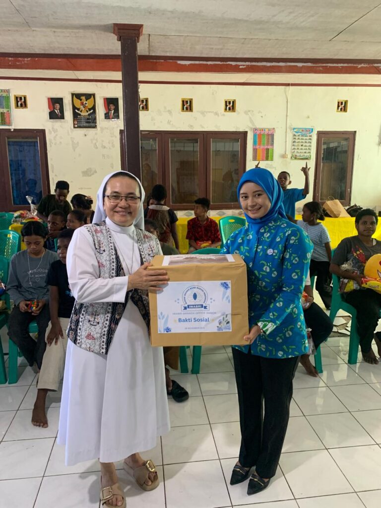 Ambon, CakraNEWS.ID– Ikatan Wanita Bank Rakyat Indonesia (IWABRI) BRI Cabang Ambon bersama Persekutuan Pekerja Kristen (PPK) BRI Cabang Ambon melaksanakan kegiatan bakti sosial di Panti Asuhan Maria Mediatrix yang dipimpin oleh Ketua Panti, Sr. Agnes Nadeak TMM, Sabtu (29/11).