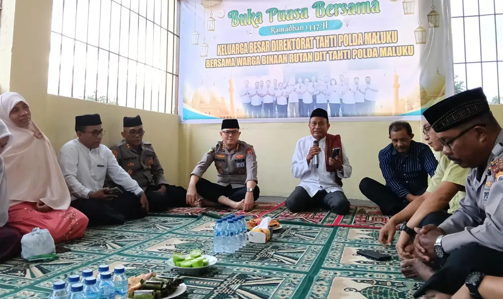 Ambon, CakraNEWS.ID— Direktorat Tahanan dan Barang Bukti (Tahti) Polda Maluku menggelar kegiatan buka puasa bersama dalam rangka Ramadan 1447 Hijriah bersama warga binaan di Rumah Tahanan (Rutan) Dit Tahti Polda Maluku, Jumat (6/3).