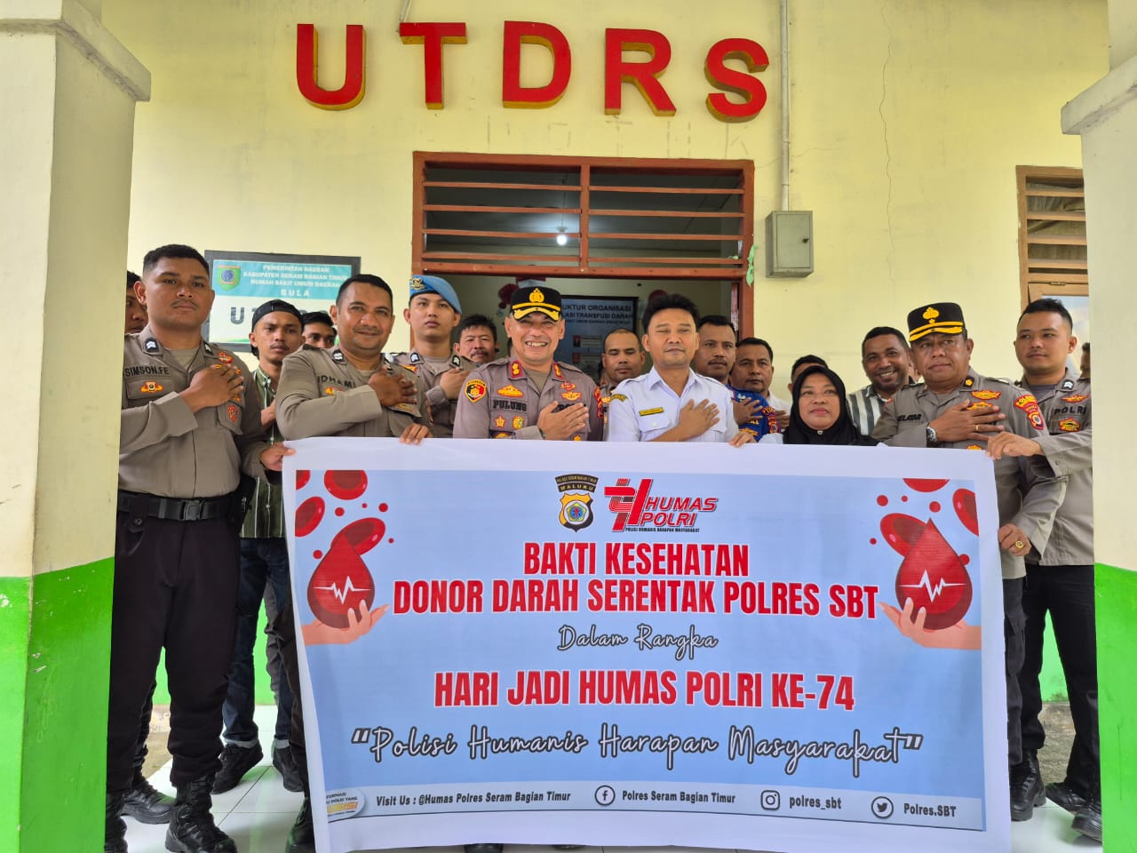 Polres Seram Bagian Timur Gelar Donor Darah dan Berbagi Kasih di RSUD Bula Peringati HUT Humas Polri ke-74