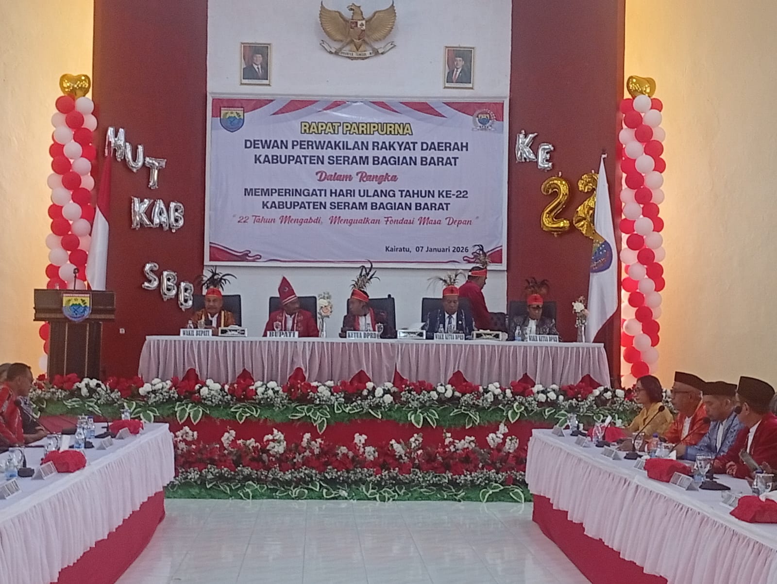 SBB,CakraNEWS.ID- Peringati hari ulang tahun ke-22, Kabupaten Seram Bagian Barat (SBB), dilakukan Dewan Perwakilan Rakyat Daerah (DPRD) Kabupaten Seram SBB dengan menggelar rapat paripurna. Rapat paripurna HUT SBB ke-22, mengusung tema “ 22 Tahun Mengabdi, Menguatkan Fondasi Masa Depan”, dipimpin langsung  Ketua DPRD Kabupaten SBB, Andarias Hengky Kolly, bertempat di kantor DPRD Kabupaten SBB yang […]