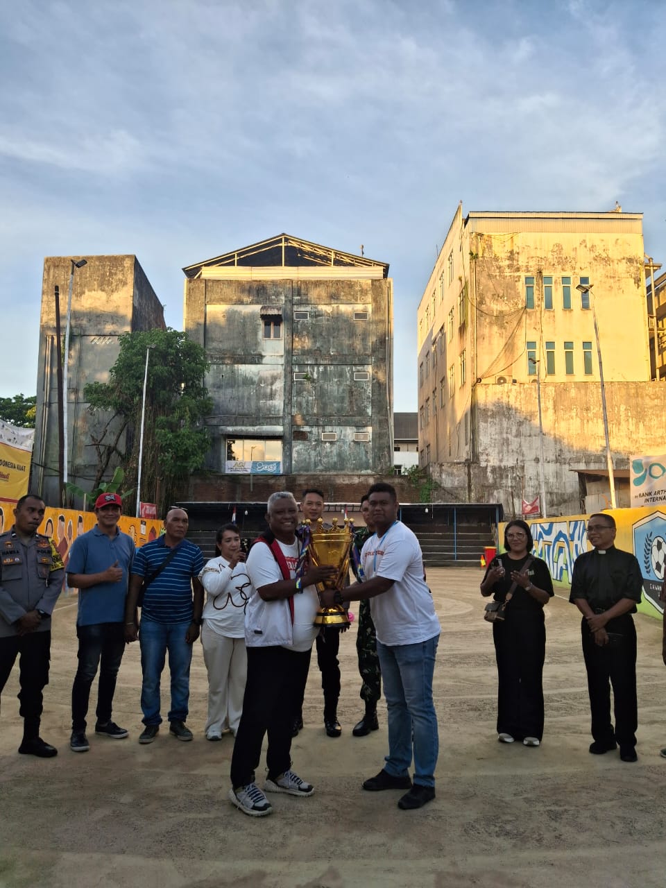 Ambon, CakraNEWS.ID— Kepala Dinas Pemuda dan Olahraga (Dispora) Kota Ambon, Bapak Richard Luhukay, AP, menghadiri sekaligus membuka secara resmi Turnamen Gawang Mini STRAAT JONGEN’S U-23 yang berlangsung di Lapangan Kolonel Pieters, Ambon.