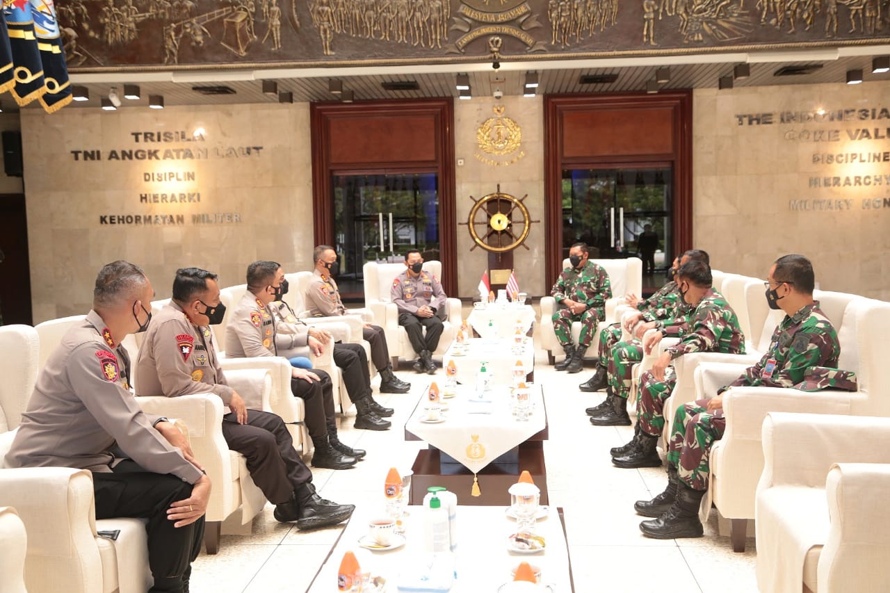 Jakarta,CakraNEWS.ID- Kapolri Jenderal Listyo Sigit Prabowo menyambangi Kepala Staf Angkatan Laut (KSAL) Laksamana TNI Yudo Margono di Mabes TNI AL, Cilangkap, Jakarta Timur, Senin (22/3/2021).