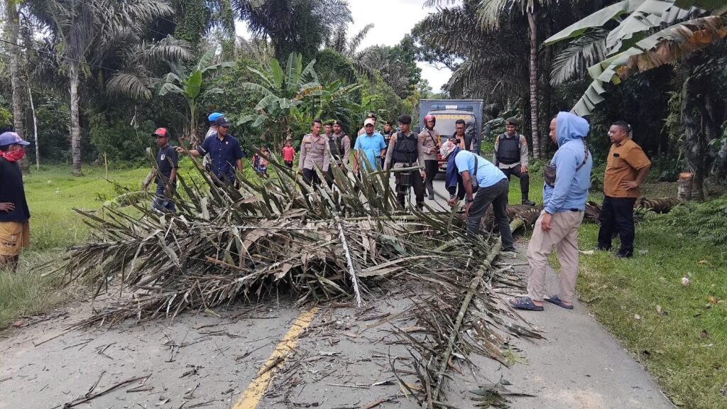 Pemalangan jalan tersebut dilakukan masyarakat Desa Alang Asaude,sebagai bentuk kekecewaan terhadap peristiwa pembakaran empat unit sepeda motor milik warga Desa Alang Asaude oleh orang tak dikenal (OTK).