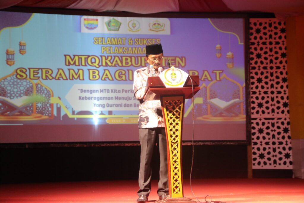 Bupati SBB, Asri Arman, dalam sambutannya menegaskan bahwa MTQ bukan sekadar ajang kompetisi membaca Al-Qur’an, tetapi ruang pembinaan yang mampu menanamkan karakter berakhlak dan berintegritas bagi generasi muda.