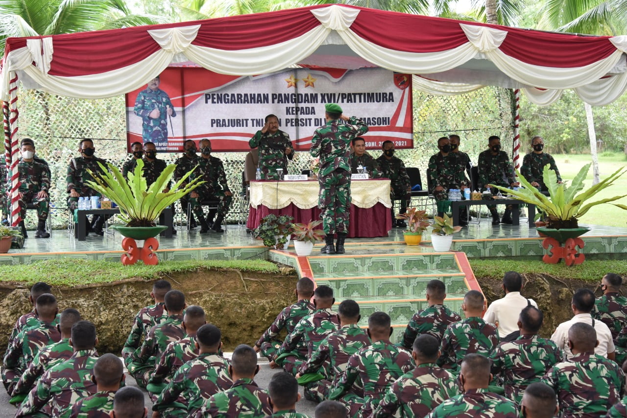 Kekaguman tersebut, disampaikan oleh Pangdam XVI/Pattimura, Mayjen TNI, Jefri Apoli Rahawarin, didampingi beberapa Pejabat Utama Kodam XVI/Pattimura, memberikan pengarahan kepada seluruh Prajurit dan PNS wilayah Masohi, bertempat di Mako Yonif 731/Kabaresi, Waepo, Kabupaten Maluku Tengah, pada Jumat (28/05/2021).