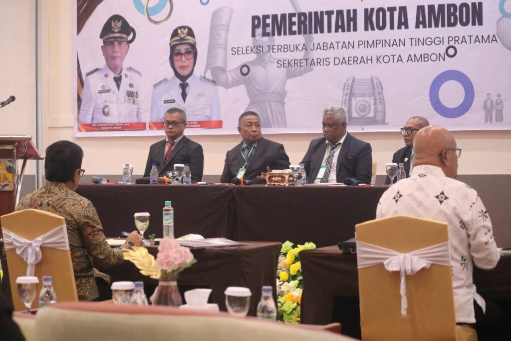Dalam tahapan seleksi, tercatat sebanyak empat peserta mengikuti proses seleksi terbuka jabatan Sekretaris Kota Ambon. Para peserta memaparkan gagasan strategis terkait peran Sekretaris Daerah dalam mendukung pembangunan daerah.