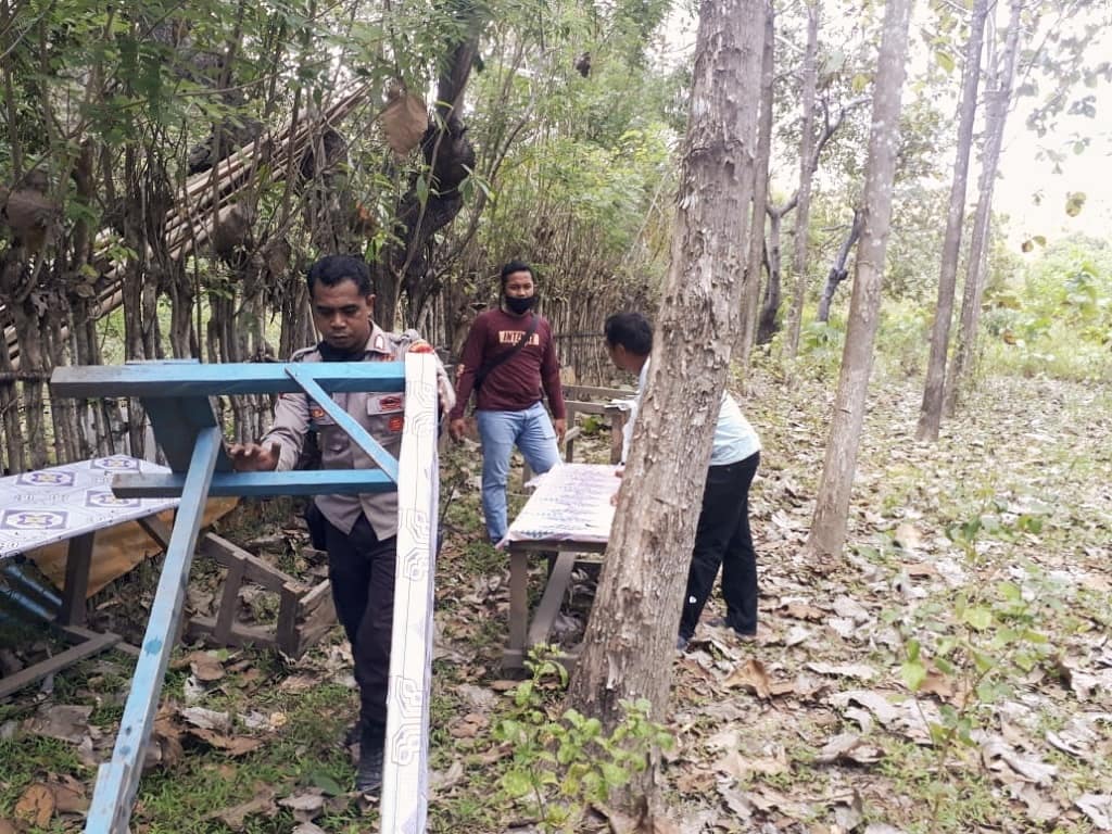 Namlea,CakraNEWS.ID- Berantas penyakit masyarakat, Kapolsek Namlea IPTU Handry Dwi Azhari,S.T.K,S.I.K, bersama beberapa personil Polsek, bakar tempat judi sabung ayam di Desa Karang Jaya Kecamatan Namlea Kabupaten Buru, pada Minggu (1/11/2020).