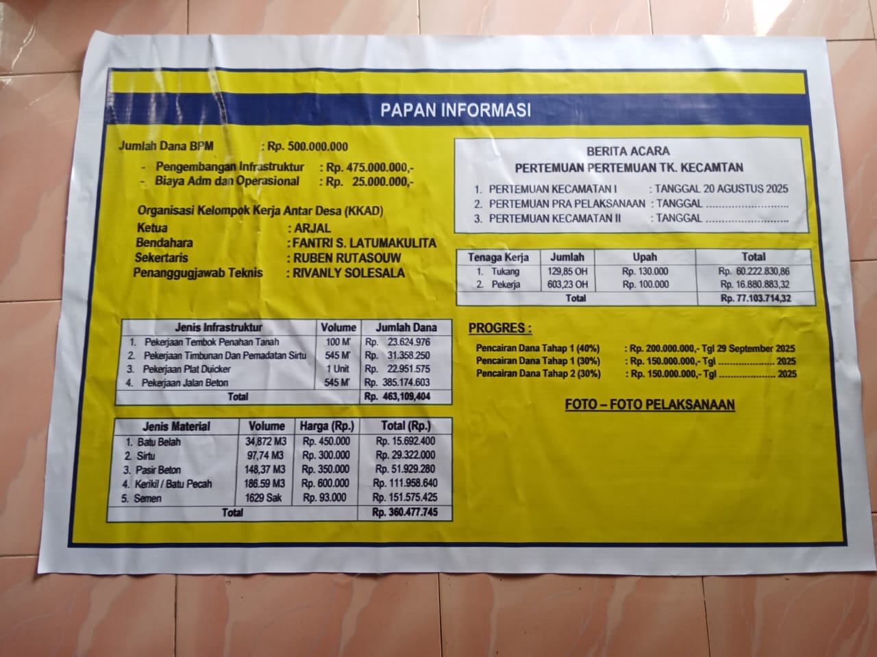 Informasi yang dihimpun dari warga setempat juga menyebutkan adanya dugaan ketidaksesuaian dalam proses pengadaan dan pemuatan material.