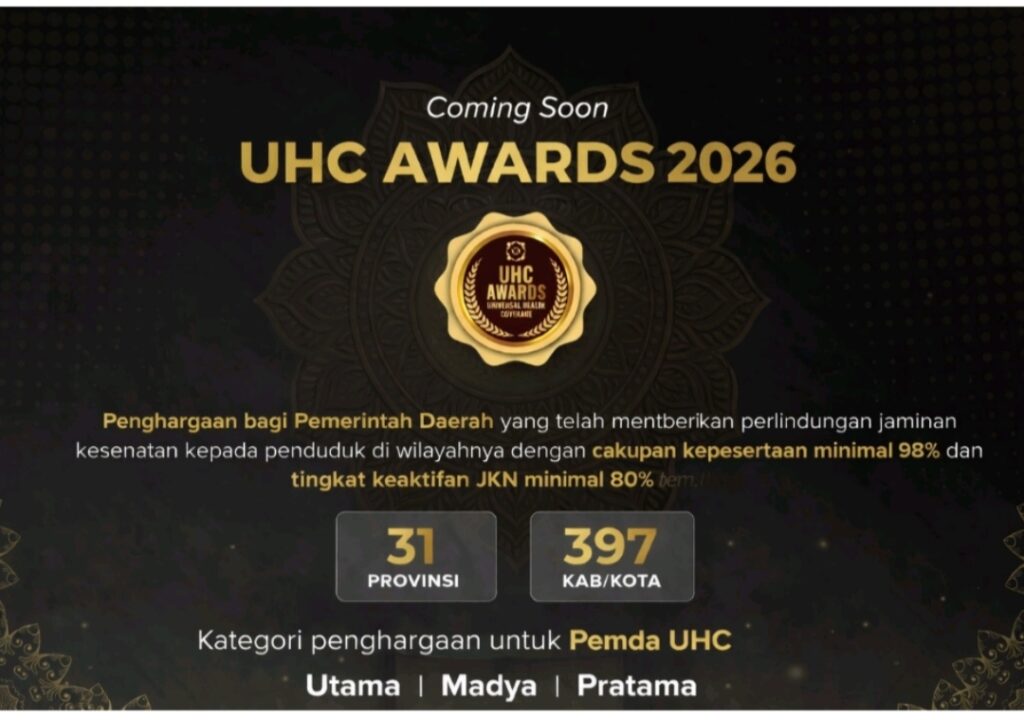 Sebagai bentuk penghargaan atas komitmen pemerintah daerah dalam memberikan perlindungan jaminan kesehatan kepada masyarakat, akan diselenggarakan kegiatan UHC Awards.