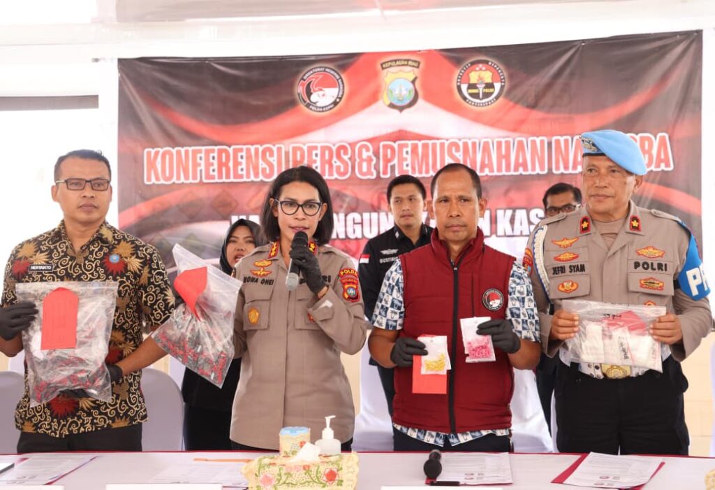 Ungkapan tersebut, di sampaikan, Direktur Resnarkoba Polda Kepri, melalui Kabid Humas Polda Kepri, Kombes Pol. Dr. Nona Pricillia Ohei, dalam konferensi pers yang digelar di Pendopo Polda Kepri, Kamis (12/2/2026).
