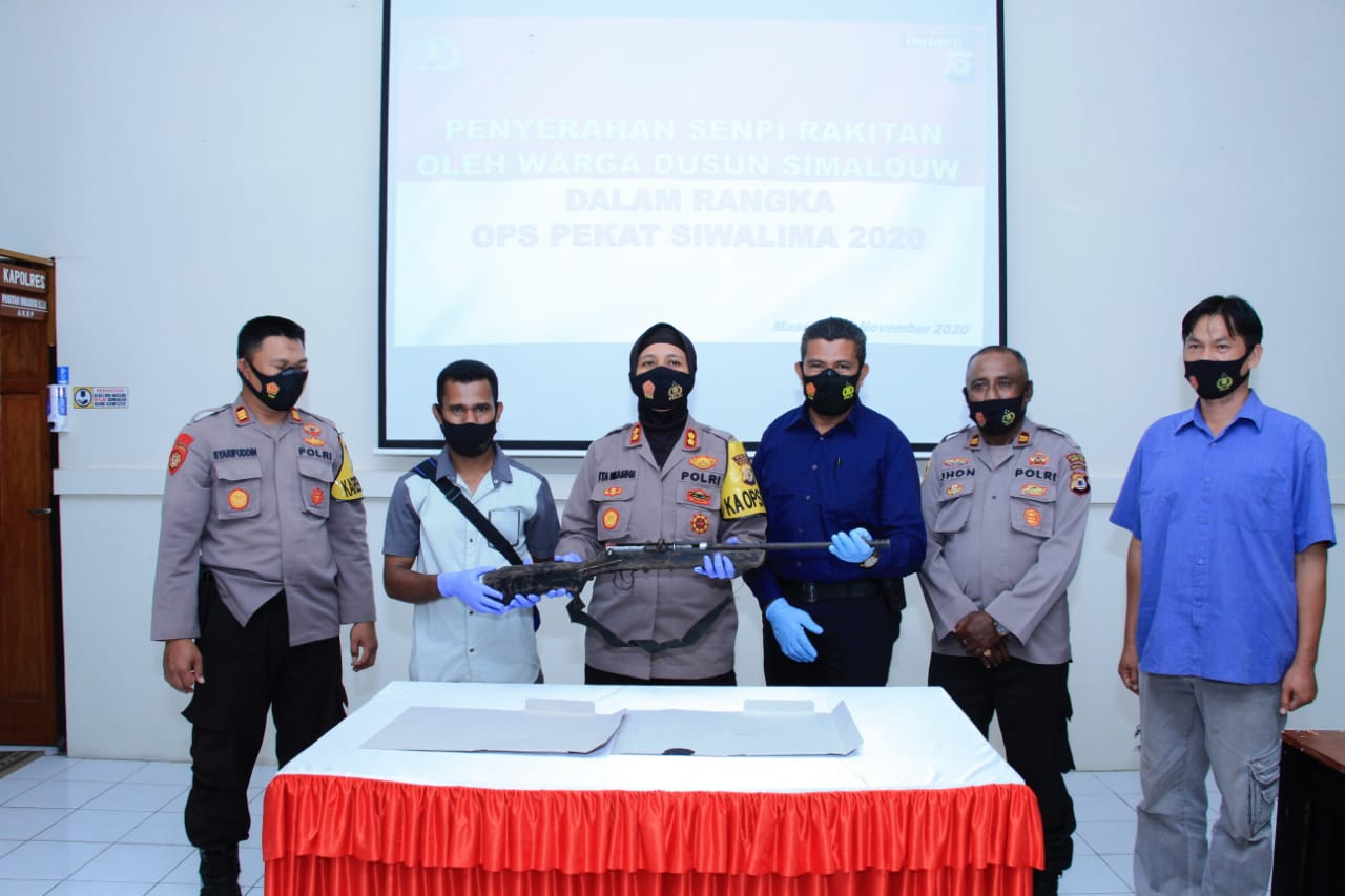 Maluku,CakraNEWS.ID- Satu pucuk senjata api rakitan laras panjang, diserahkan warga Dusun Simalouw, Desa Sepa, Kecamatan Amahai, kepada Kapolres Maluku Tengah, AKBP Rosita Umasugi, pada Jumat (4/12/2020).
