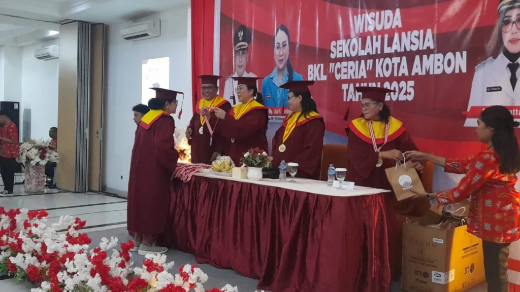 Ambon, CakraNEWS.ID– Pemerintah Kota Ambon menegaskan komitmennya mengurus warganya secara utuh, dari lahir hingga akhir hayat. Komitmen itu ditegaskan Wali Kota Ambon Bodewin Wattimena dalam acara Wisuda Sekolah Lansia BKL “CERIA” Kota Ambon Tahun 2025, yang digelar di Hotel Marina, Sabtu (13/12/2025).