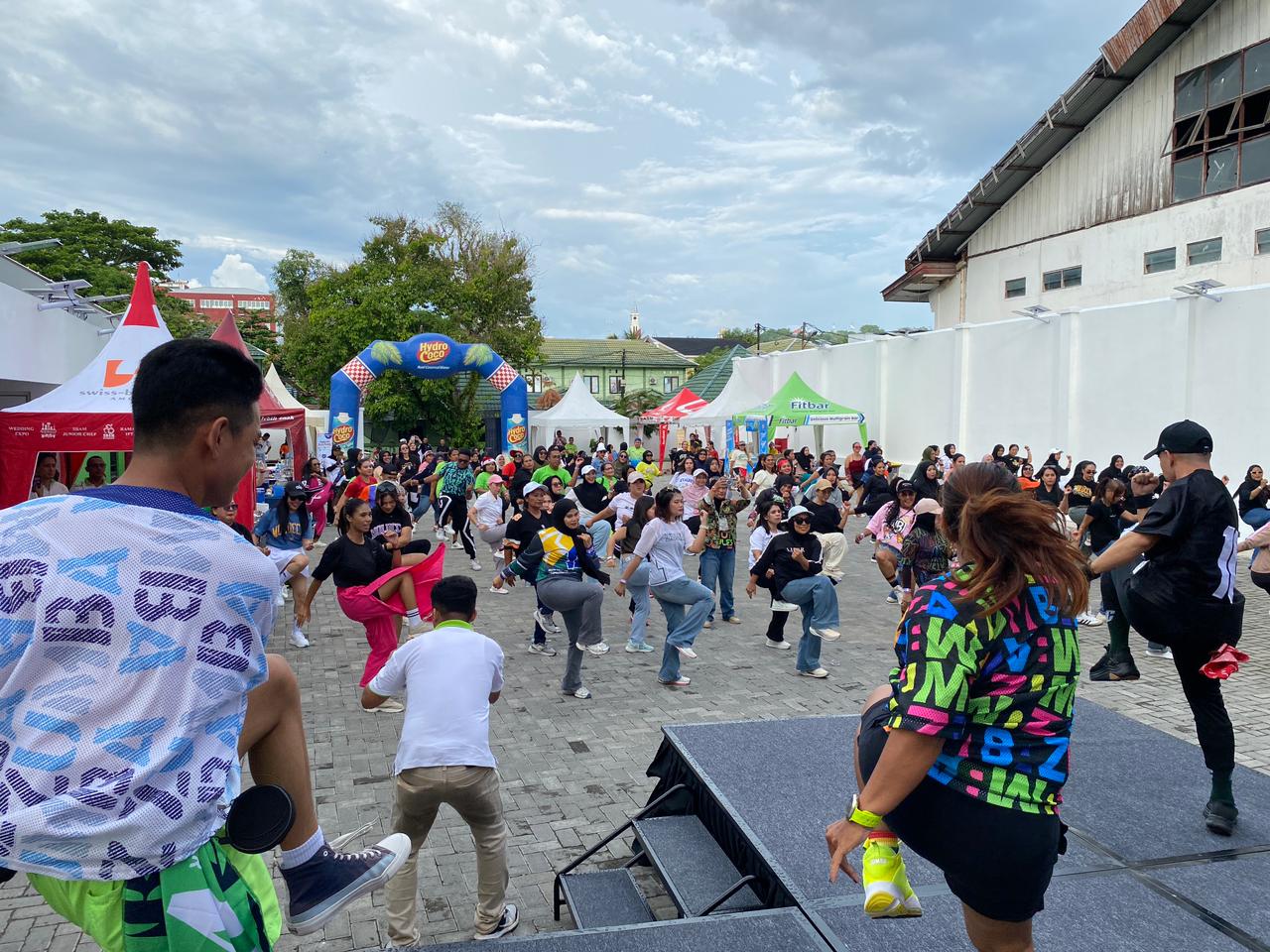 Sejak pagi, area kegiatan dipadati peserta yang berpartisipasi dalam zumba marathon selama dua jam nonstop, dipandu puluhan instruktur profesional.